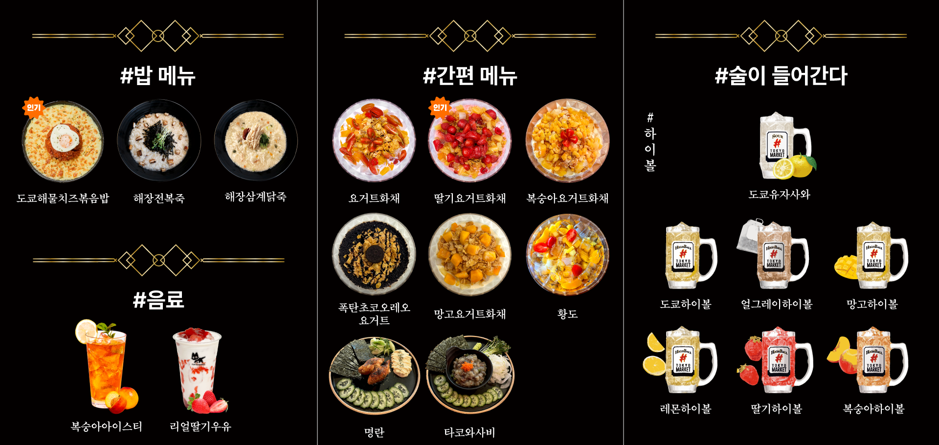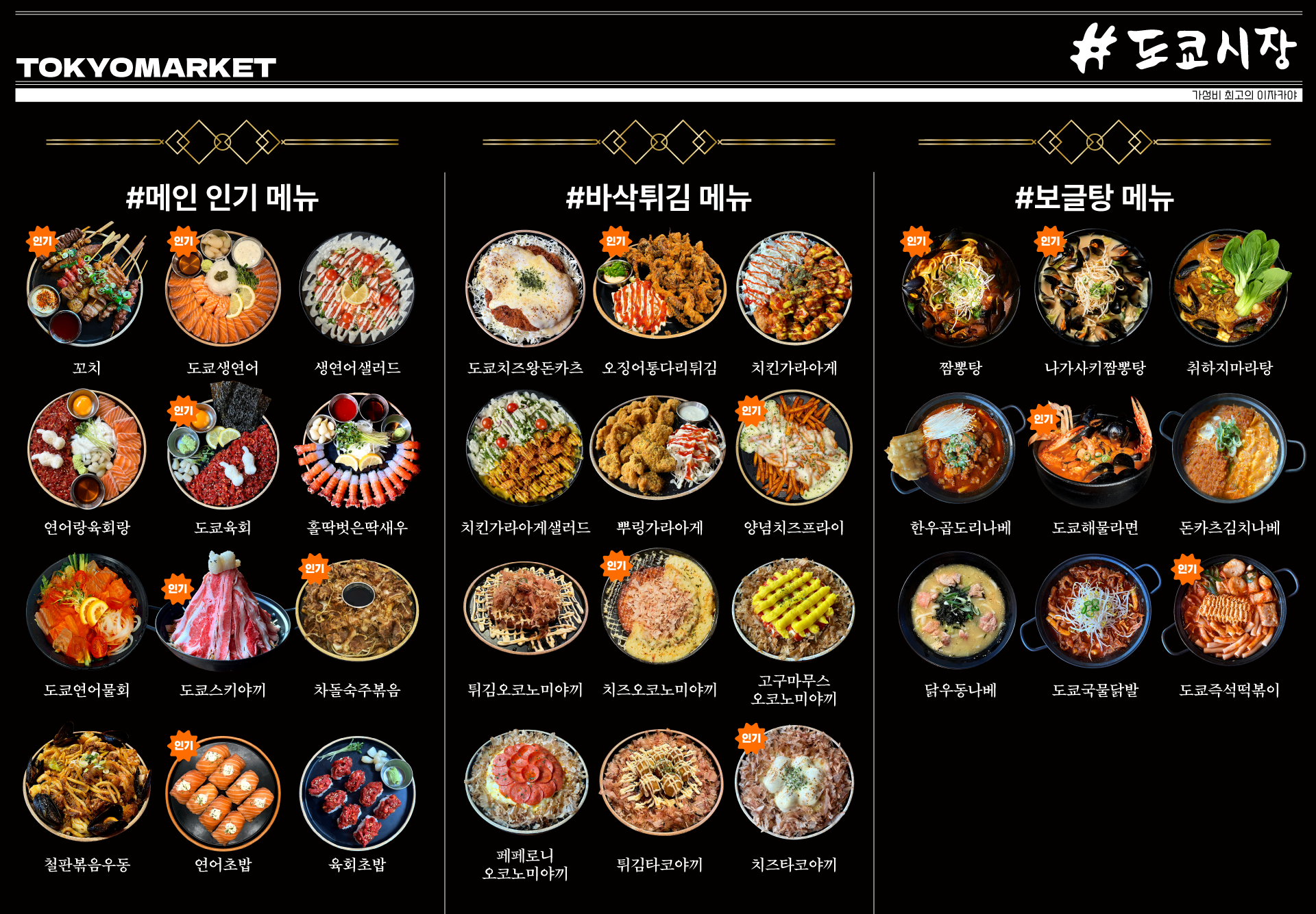 도쿄시장의 베스트 메뉴를 만나보세요.